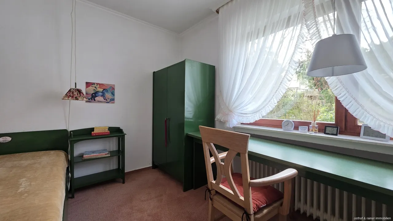 Helle Räume und ein angenehmes Wohngefühl schaffen von Anfang an ein Gefühl des Ankommens. Auf einer Ebene erwarten Sie drei gut geschnittene Zimmer, die vielfältige Nutzungsmöglichkeiten bieten – ob als Schlafzimmer, Arbeitsbereich oder persönlicher Rückzugsort. Die separate Kochküche mit praktischer Abstellkammer lädt zum Kochen und Genießen ein – funktional und mit ausreichend Platz für kulinarische Kreativität. Ergänzt wird der Eingangsbereich durch eine Garderobe sowie ein Gäste-WC – durchdacht und alltagstauglich. Das geräumige Badezimmer versprüht dabei den charmanten Charakter der 70er Jahre und bietet viel Platz für individuelle Gestaltungsideen. Das Herzstück des Hauses bildet der großzügige Wohn- und Essbereich – lichtdurchflutet, offen gestaltet und perfekt für gemeinsame Stunden mit Familie und Freunden. Ein behaglicher Kaminofen sorgt hier an kühleren Tagen für wohlige Wärme und eine besonders gemütliche Stimmung. Vom Wohnbereich gelangen Sie ebenerdig direkt in den liebevoll eingewachsenen Garten.