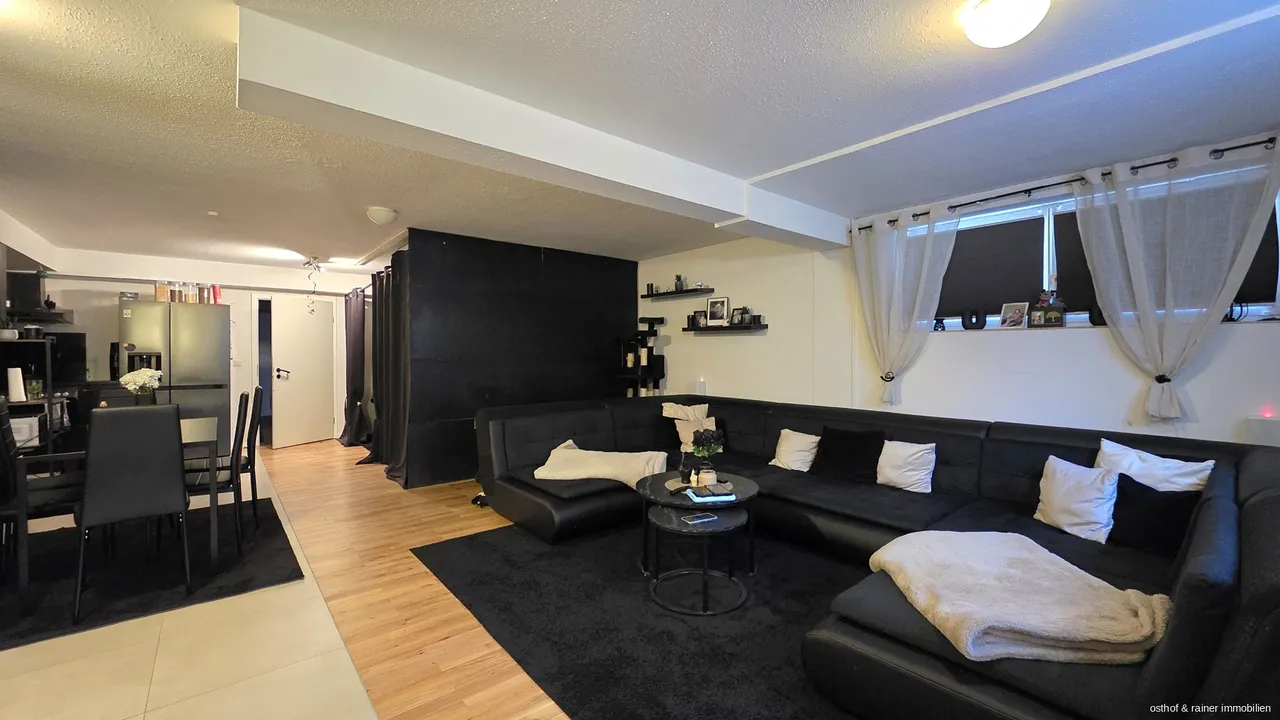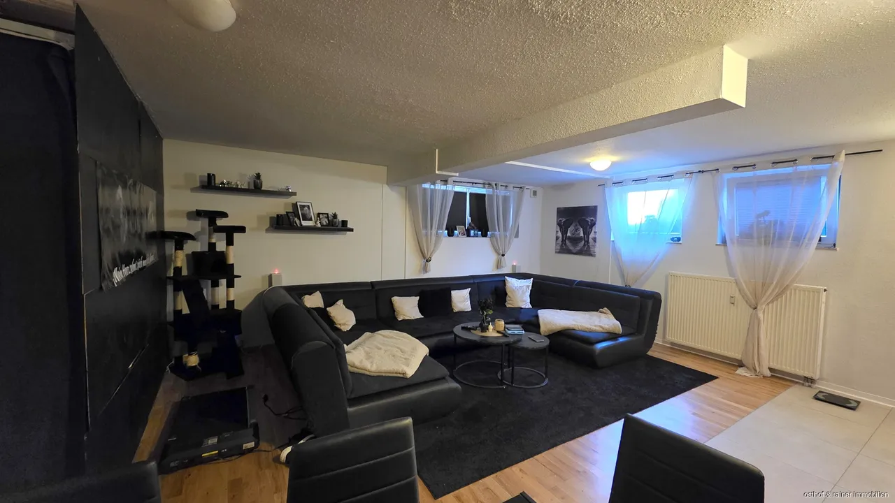Diese Wohnung befindet sich im Souterrain eines Mehrfamilienhauses mit 8 Parteien. Die Wohnung aus dem Baujahr 1997 hat ca. 125 Quadratmeter Wohnfläche. Sie treffen auf 3 Zimmer, eine Küchennische im Wohnzimmer, ein Badezimmer mit Dusche und 2 WCs. Die Wohnung verfügt über eine Terrasse und 2 PKW-Stellplätzen vor der Haustür.