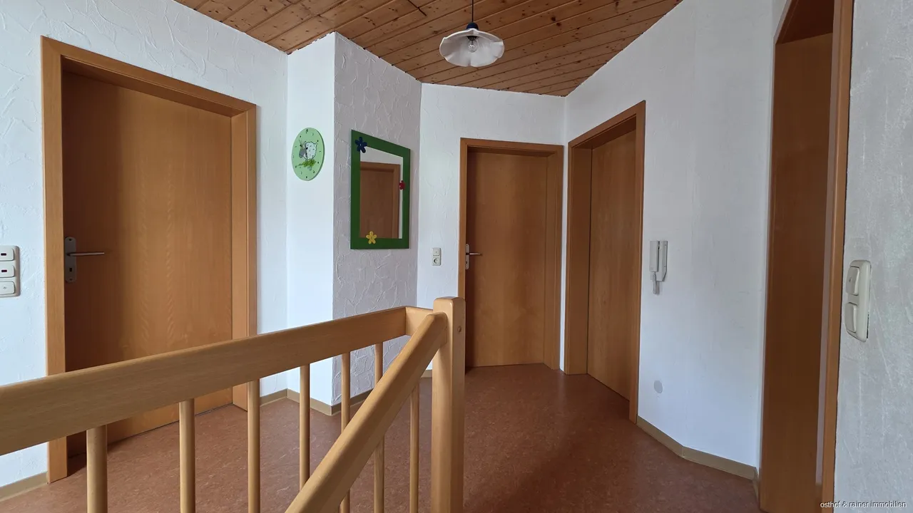 Der Treppe folgend befinden sich im Obergeschoss 3 Schlafzimmer sowie ein Badezimmer.
