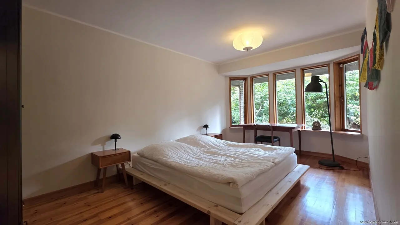 Das Haus erstreckt sich über zwei Ebenen und beeindruckt durch seine offene und zugleich gemütliche Gestaltung. Großzügige Wohnflächen bieten genug Platz für unterschiedlichste Lebensformen: Familie, Arbeiten von zuhause oder Rückzugsorte. Zahlreiche Fensterfronten sorgen für viel Tageslicht und eine angenehme Atmosphäre. Hochwertige Holzfußboden und liebevolle Details unterstreichen den Charakter des Hauses.